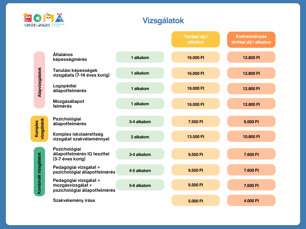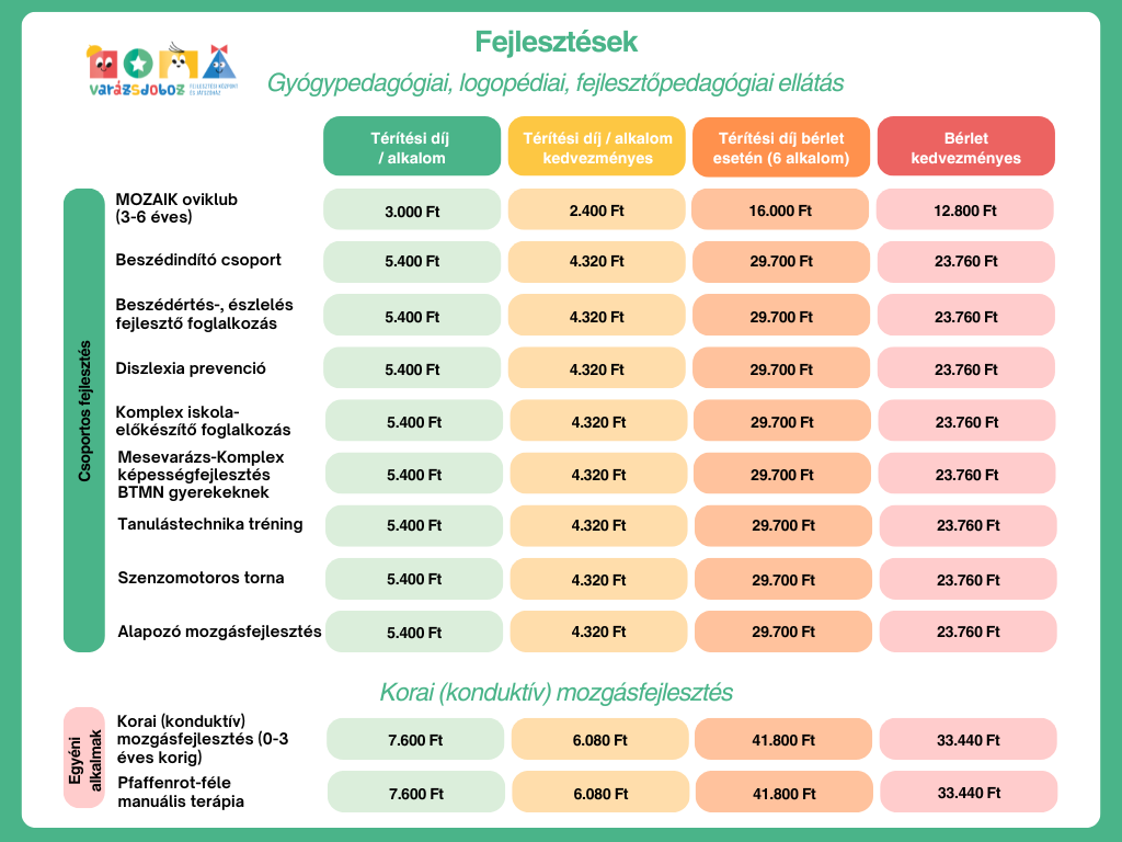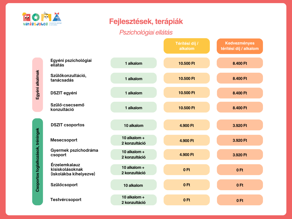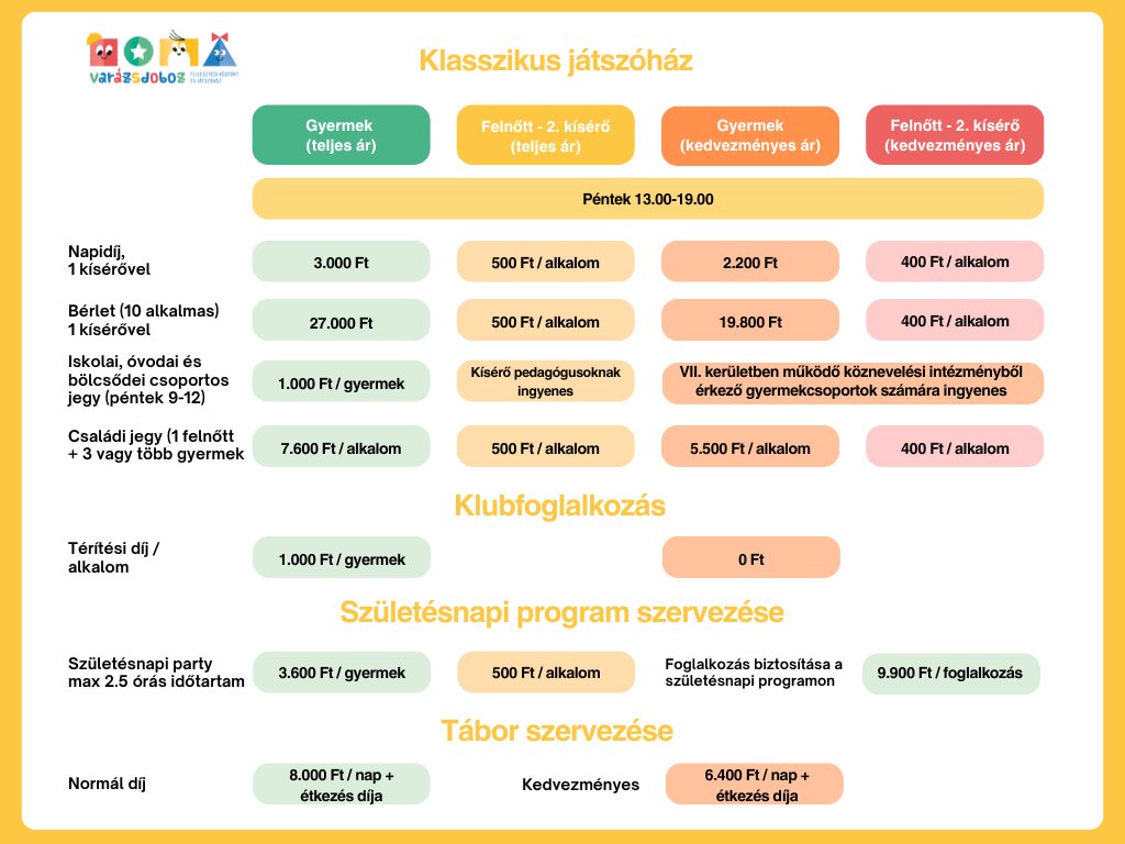 2026.01.01-től érvényes díjainkA táblázatokban feltüntetett kedvezményes árra jogosultak a VII. kerületi bejelentett lakóhellyel, vagy tartózkodási hellyel rendelkezők.